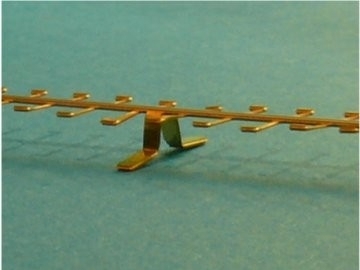 Messing "stijgladder", lengte 90 mm, breedte 5,6 mm. Deze ladder is voorzien van massive bevestigingsbeugels voor de bevestiging aan iedere mast. Schaal 1:100