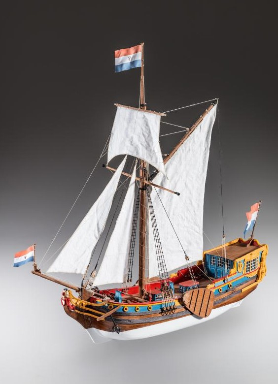 Statenjacht werd in de 17e eeuw in Nederland gebruikt voor het vervoer van wettelijke of zakelijke persoonlijkheden. Dit schip was voorzien van een vlakke bodem, afgeronde boeg en achtersteven rijkelijk versierd. Kanonnen aan boord van het schip werden gebruikt voor salueren en seinen. Schepen van dit type waren normaal gesproken 18 tot 21 meter lang. Dit specifieke model stelt een Statenjacht in dienst van de Verenigde Oost-Indische Compagnie (VOC-Vereenigde Oost-Indische Compagnie).