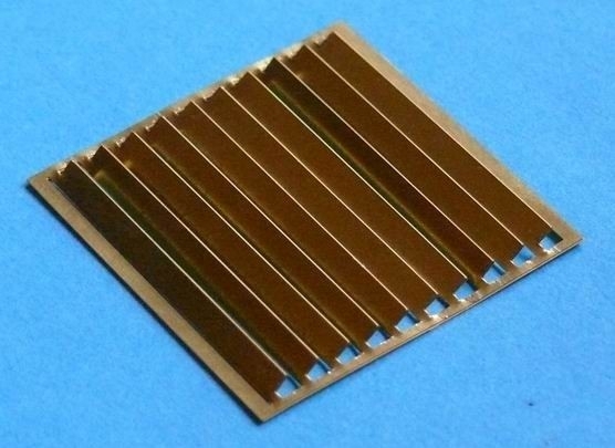 Fine structurated brass slate gratings with etched screws inside. The gratings will be delivered flat but they can easily from the backside be bent out with a little screwdriver.