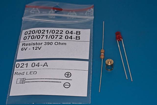 Incl.; brass digs, LED red (6V-12V), and resistance